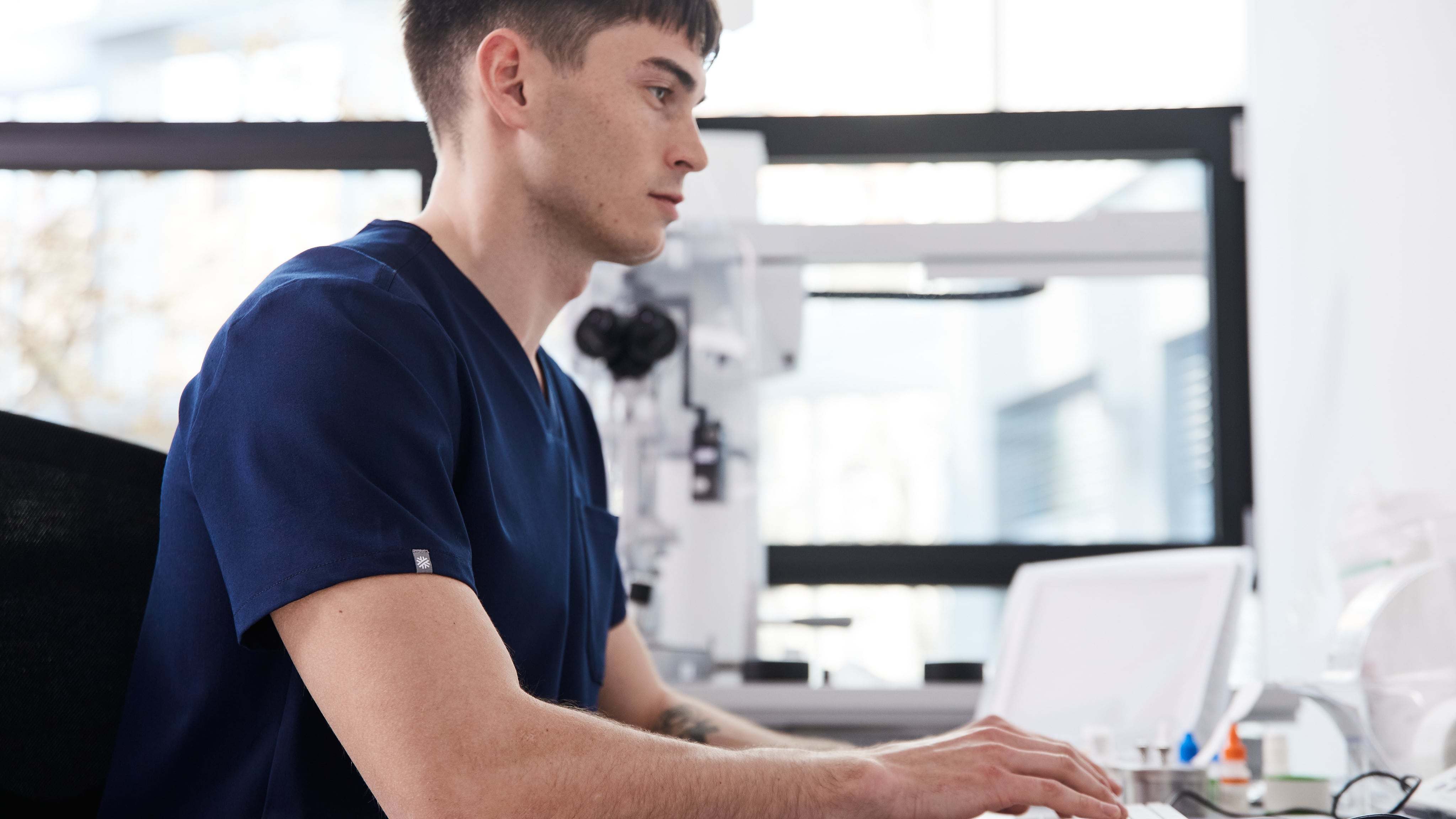 ECOVERO Faser überzeugt. Jedoch ist sie alleine nicht stark genug, um dem medizinischen Alltag gerecht zu werden. Deshalb haben wir sie mit recyceltem Polyester gemischt. Mit einem kleinen Anteil Elastan haben wir zusätzlich eine 360-Stretch-Fähigkeit erreicht und nach einigen Kniffen mehr und weiteren Veredelungen entstand CapeTeX.